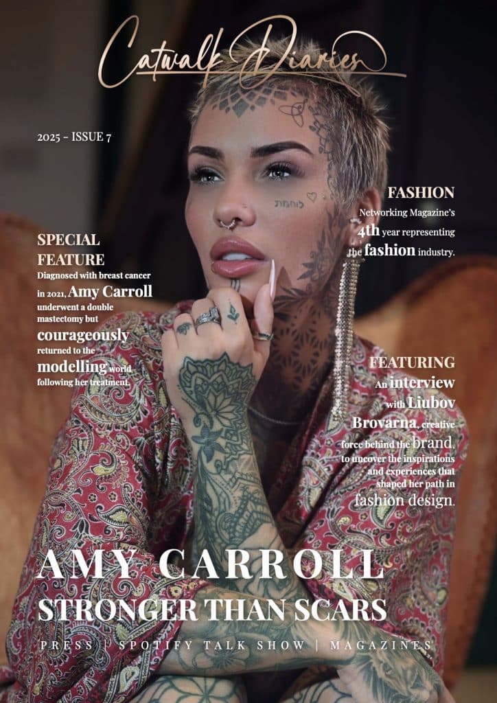 Diagnosed with breast cancer in 2021, Amy underwent a double mastectomy but courageously returned to the modelling world following her treatment.